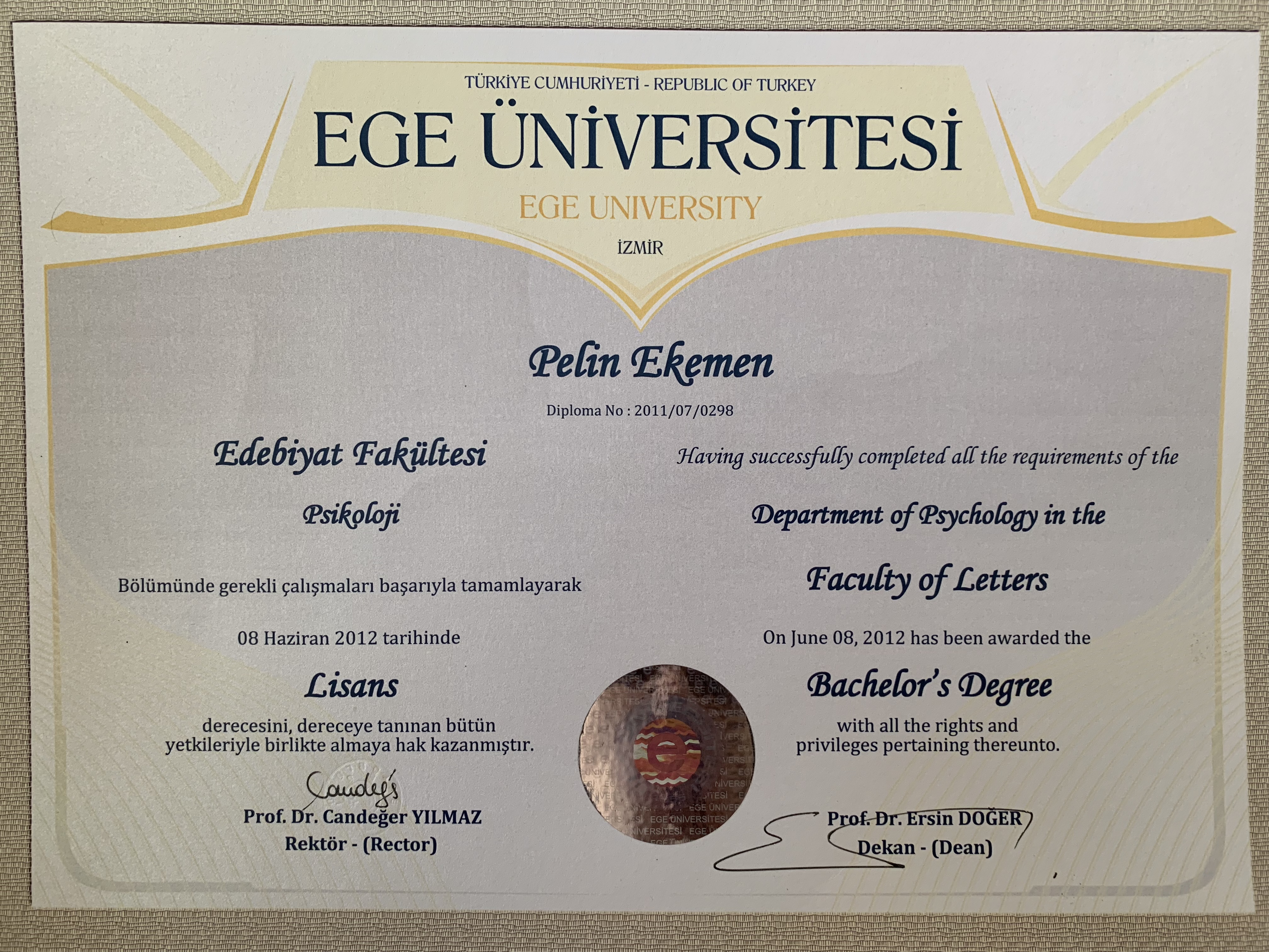 2008-2012 : Ege Üniversitesi, Psikoloji Bölümü