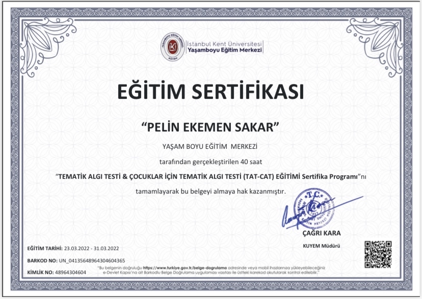 2022: Çocuklar İçin Algı Testi ve Tematik Algı Testi Uygulayıcı Sertifikası
